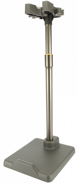 Сборка не занимает много времени: достаточно вставить стойку в отверстие основания до щелчка и надеть на нее держатель. Высота регулируется в соответствии с ростом пользователя.