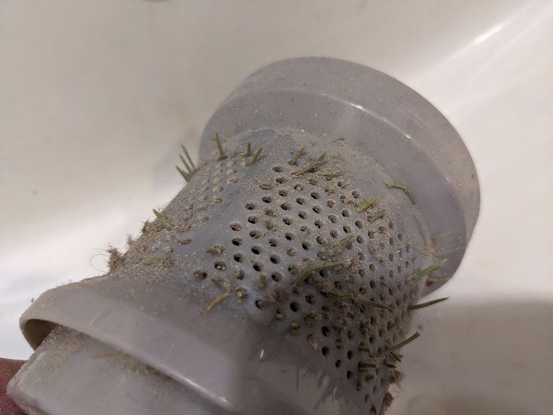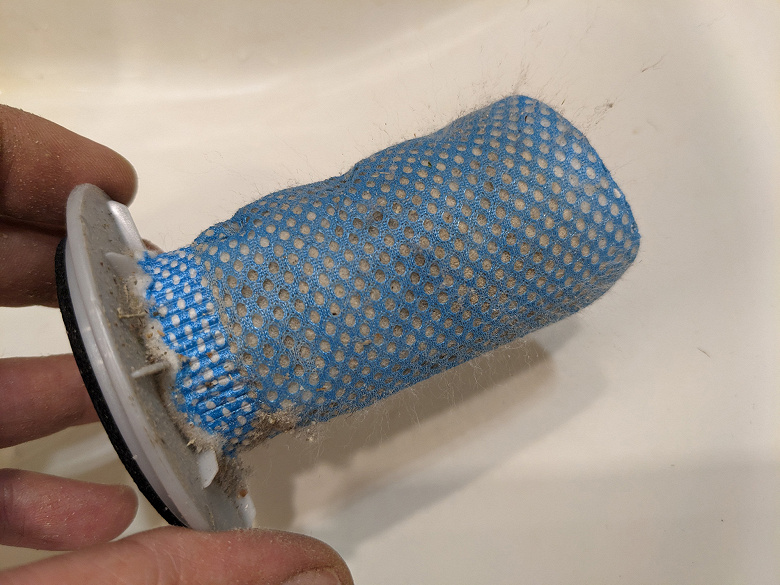 А вот отверстия на пластиковом циклонном фильтре могли бы быть и поменьше: сквозь них проходят даже такие крупные частицы, как хвоя новогодней ели.