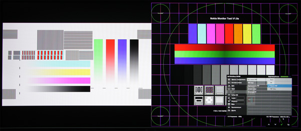 Кинотеатральные режимы работы тестировались при подключении к Blu-ray-плееру Sony BDP-S300. Проверялась работа по HDMI. Монитор воспринимает сигналы 576i/p, 480i/p, 720p, 1080i и 1080p при 50 и 60 кадр/с. 1080p при 24 кадр/с поддерживается, но кадры в этом режиме выводятся с чередованием длительности 2:3. В случае чересстрочных сигналов картинка просто выводится по полям. Тонкие градации оттенков различаются как в светах, так и в тенях. Яркостная и цветовая четкости очень высокие. Интерполяция низких разрешений и Full HD к разрешению матрицы выполняется без значимых артефактов.