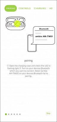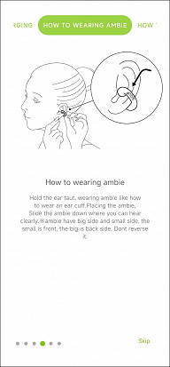 У наушников есть собственное ПО под названием Ambie, доступное в AppStore и Google Play, правда не во всех регионах. Для Android не составляет никакого труда найти установочный файл — так мы и поступили. При первом запуске приложение предлагает ознакомиться с инструкцией, частично переведенной на английский язык.