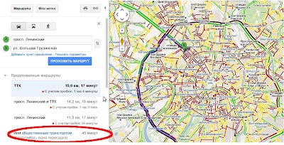 Конечно, поездка на машине, особенно в часы пик, — не всегда оптимальный способ добраться в то или иное место. Мы разработали функцию, с помощью которой вы можете узнать, каким средством передвижения лучше воспользоваться и сколько времени займет поездка на общественном транспорт.
