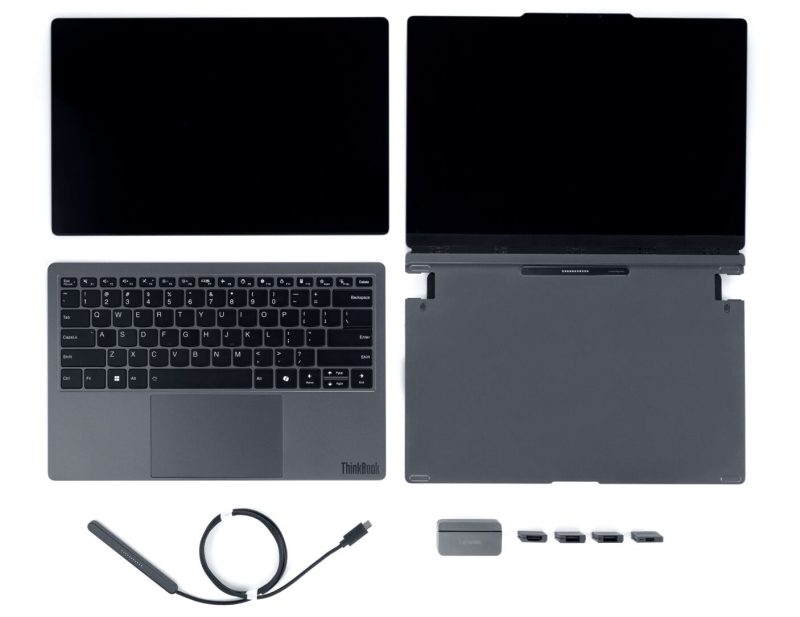 Ключевые модульные элементы ThinkBook Modular AI PC включают съёмную Bluetooth-клавиатуру, дополнительные модули дисплея и сменные порты ввода-вывода, включая USB Type-A, USB Type-C и HDMI, что позволяет устройству переключаться между компактной портативностью и повышенной производительностью, сохраняя при этом стабильность, безопасность и производительность системы.