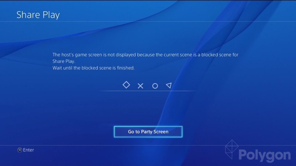 При попытке включить Share Play во время прохождения сюжетной кампании пользователи видят предупреждение, сообщающее о заблокированной возможности трансляции, которое не исчезает на протяжении всей игры. В письме Polygon представитель Sony сообщил, что разработчики и издатели могут сами решать, отключать им эту функцию или нет.