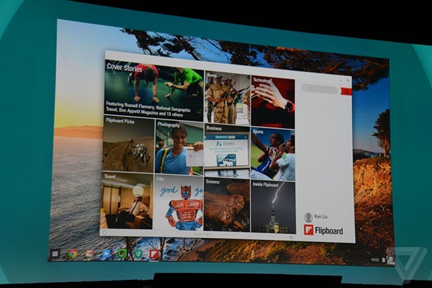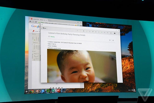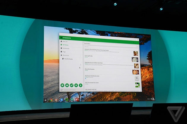 Впрочем, руководитель Google не сказал, когда эта возможность появится в Chrome OS, хотя и продемонстрировал работу на хромбуках Android-приложений Evernote, Flipboard и Vine. Приложения могут вызываться как в узких окошках со смартфонным интерфейсом, так и в планшетном виде.