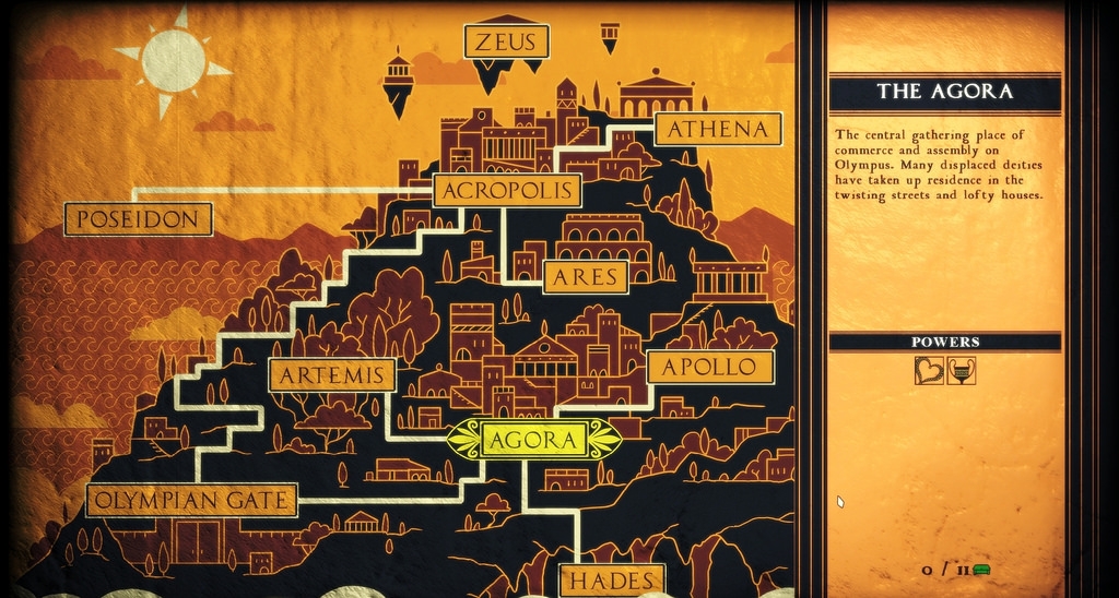 Чтобы взобраться на Олимп, игроку предстоит начинать с самого низа горы и сражаться с различными богами. Порядок и путь можно выбирать — пользователь решает, победить ли сначала Артемиду в опасных лесах, либо сперва испортить вечеринку Аполлону. В любом случае, на пути встретятся интересные персонажи, полностью озвученные актёрами. При разработке авторы консультировались с профессионалами в области классической литературы.
