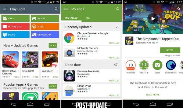 Как и ожидалось, Google представила версию 5.0 своего магазина Google Play. В этом обновлении интерфейс стал ещё более плоским и близким к идеологии Material Design, представленной вместе с Android L на конференции Google I/O в этом году. Большинство пользователей получит обновление уже на днях в рамках обычной процедуры обновления.