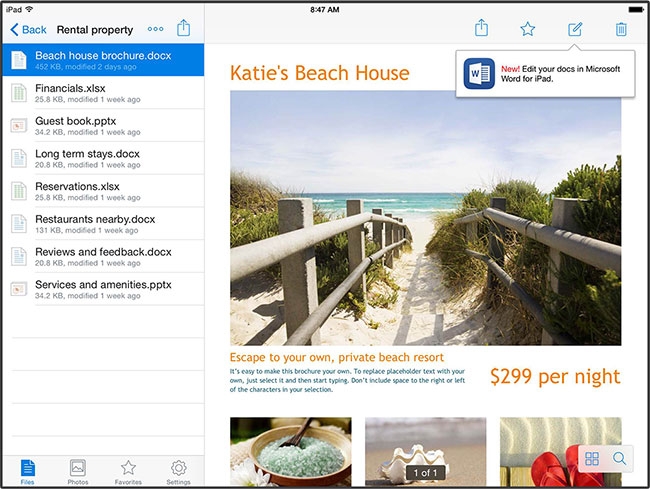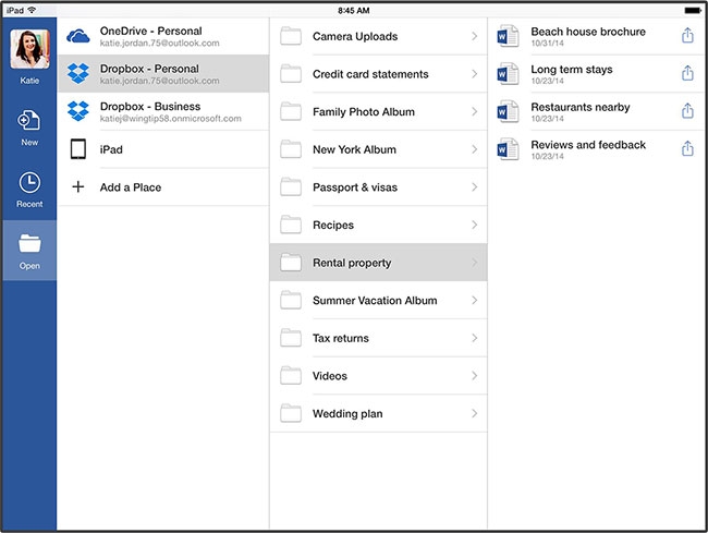 «Доступ к материалами на Dropbox — это один из самых первых и ключевых запросов пользователей версии Office для iPad, — отметил глава команды Office Engineering Кирк Кенингсбер (Kirk Koenigsbauer). — Они хотели получить доступ к тому, где хранится их контент. Мы реализовали это, чтобы обеспечить пользователям максимально комфортное окружение». Таким образом, Dropbox будет дополнять облачную службу Microsoft SkyDrive в Office для iPad, позволяя прямо внутри приложений открывать и редактировать документы, хранящиеся в Dropbox.