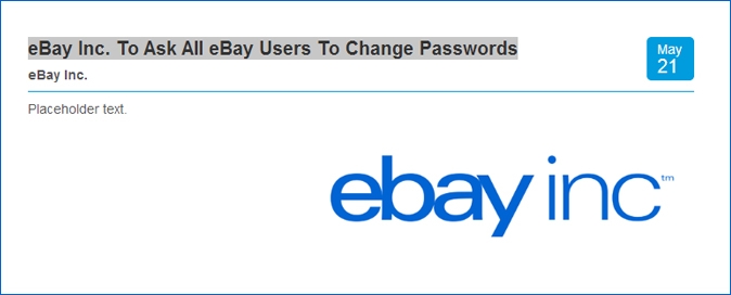 Компания eBay с сегодняшнего дня начинает рассылать пользователям электронные письма, а также демонстрировать уведомления через собственные сервисы о необходимости смены паролей к аккаунтам. Причина — крупная утечка информации.