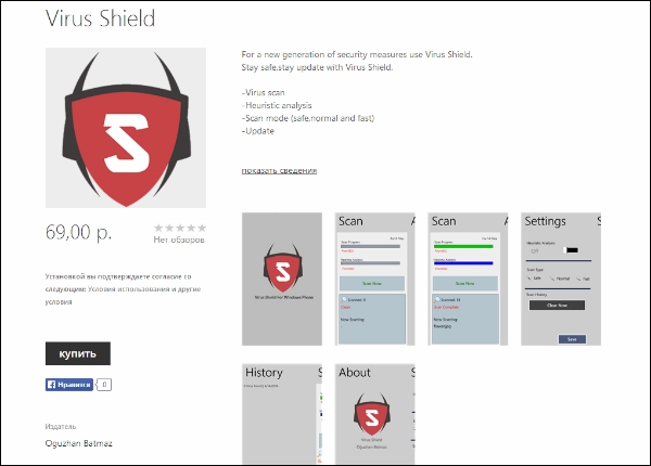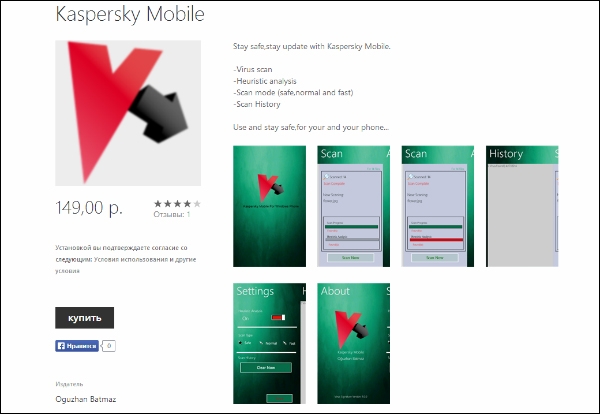 За Virus Shield последовала череда фальшивых антивирусных программ. Так, на днях «Лаборатория Касперского» зафиксировала появление платного фальшивого антивируса под названием Kaspersky Mobile в Windows Phone Store. Злоумышленники, очевидно, рассчитывали на невнимательность пользователей, так как среди продуктов «Лаборатории Касперского» нет защитного решения с таким названием.