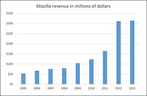 Сообщается, что с 2008 по 2011 гг. доход Mozilla рос на величину от 18 до 33%. В 2012-м разработчик браузера Firefox и мобильной операционной системы Firefox OS показал 90-процентный рост выручки — до $311 млн.