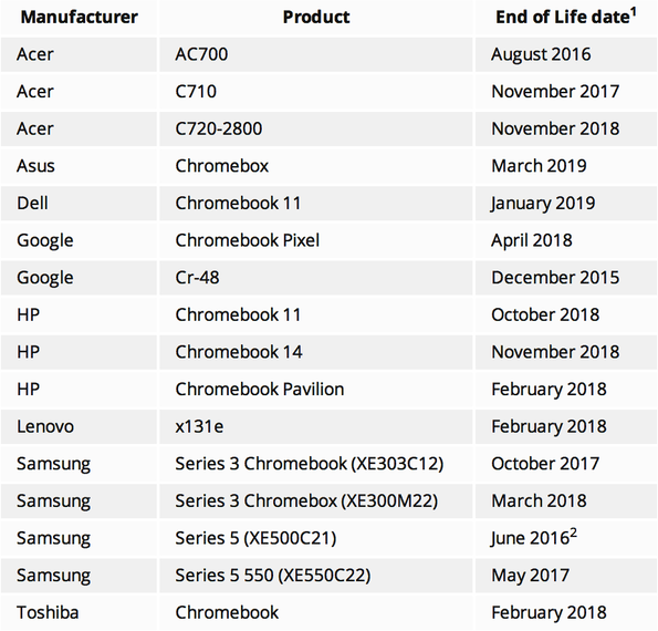 Даже 4 года поддержки старых устройств — достаточно долгий срок, но расширение обновлений до 5 лет можно только приветствовать. Например, теперь Google обещает обновлять HP Chromebook 14, по крайней мере, до ноября 2018 года. Ранее срок гарантированной поддержки простирался до ноября 2017 года.