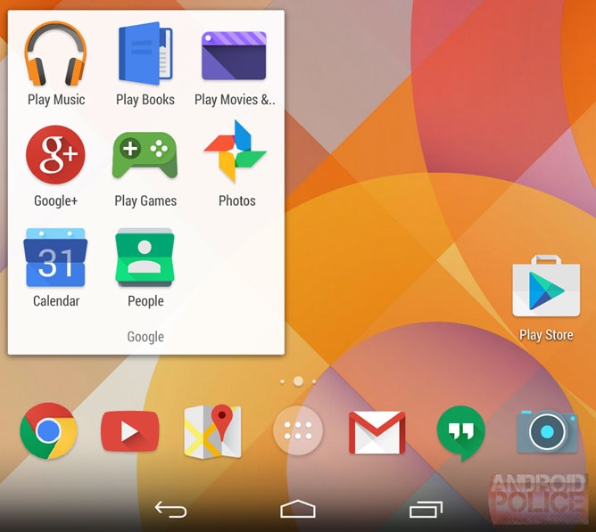 Благодаря источнику Android Police можно ознакомиться с иконками Play Music, Books, Movies и Games, а также Google+, Calendar, People, Chrome, YouTube, Maps, Gmail, Hangouts, Camera и Play Store. Интересно, что символ воспроизведения в иконке магазина Play стал ближе к сине-зелёной гамме вместо текущей многоцветной. Также хотя Music, Books и Games сохранили свои текущие цвета, иконка Movies стала фиолетовой.