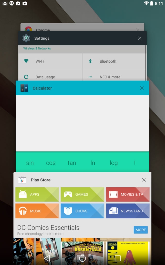 Режим многозадачности в предварительной версии Android L на Nexus 7 2013