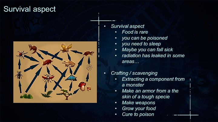 Заставить игроков ещё больше поверить в происходящее разработчики собирались с помощью параметров усталости, сытости и негативных статусов (например, отравления), которые герой должен снимать определёнными предметами. Планировалась и глубокая система крафта, позволяющая создавать из подручных средств и извлеченных из монстров органов оружие, броню и инструменты. В числе противников упоминаются дышащие кислотой инопланетяне, чью кровь можно использовать для открытия дверей, и существа, способные принимать любой облик. В борьбе с ними протагонист должен использовать как холодное, так и огнестрельное оружие — от пожарного топора и разводного ключа до лазерной винтовки —, а также способности вроде управления врагами и гравитацией. Одно прохождение рассчитывалось на 10–20 часов, однако вариативность и меняющиеся при каждом старте новой игры предметы и игровые задачи должны были обеспечить интерес к заходу на «второй круг».