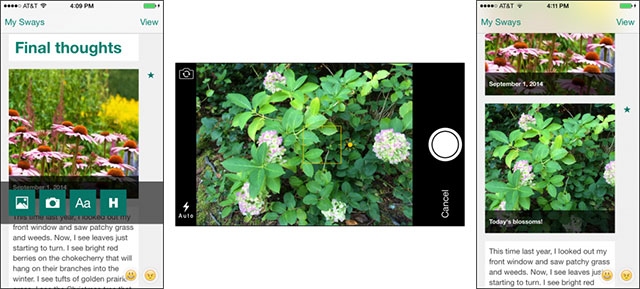 Компания уделяет Sway большое внимание и ставит его на одном уровне с четырьмя другими ключевыми программами для создания контента из пакета Office: Word, Excel, PowerPoint и OneNote. Приложение позволяет быстро и легко создавать презентации почти на любом устройстве. В результате получаются веб-базированные презентации, которые могут подстраиваться почти под любой экран, а делиться ими можно при помощи простой ссылки.