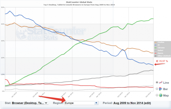 Этот срок уже истёк, и, как ожидалось, данная практика была прекращена. Трудно сказать, добились ли еврорегуляторы того, чего хотели, но рынок существенно изменился с 2009 года. За последние 5 лет, по данным StatCounter, популярность Microsoft Internet Explorer упала с 50% до 15%, однако за счёт этого сильно выросла пользовательская база Google Chrome (до 43%).