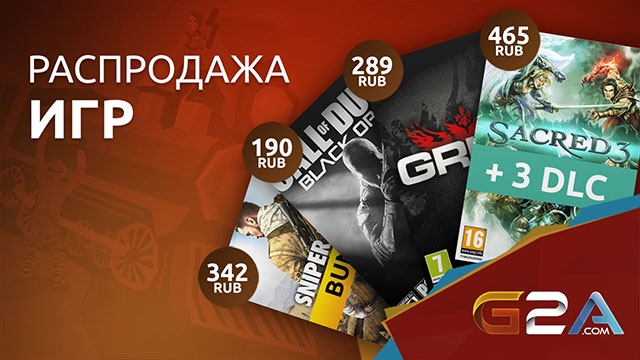 G2A.com приглашает на еженедельную распродажу, на которой можно приобрести, например, новую игру Sacred 3 с тремя дополнениями всего за 465 рублей. Также есть отличная возможность всего за 342 рубля получить сразу три игры с серии Sniper Elite. Где купить Call of Duty: Black Ops 2 дешевле, чем на Steam? — В магазине G2A со скидкой 80%!