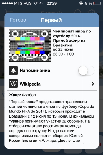 В 2014 году фраза «Я вообще не смотрю телевизор» уже не вызывает удивления — главные новости можно узнать из соцсетей и RSS-лент, а громкие сюжеты всенепременно окажутся на YouTube. Заново учиться нажимать на кнопку пульта ради чемпионата мира захотят не все — гораздо удобнее открыть приложение, зайти в нужное меню и услышать знакомый голос Романа Трушечкина или Владимира Стогниенко.