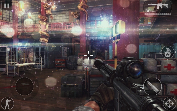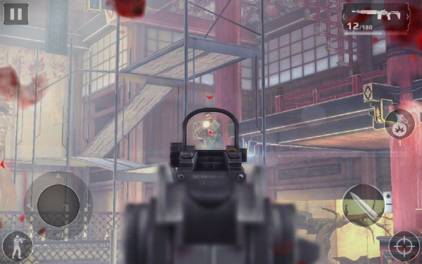 Заканчивает парад режимов мультиплеер. Здесь все по-взрослому: обширные карты, несколько доступных классов и немалый арсенал. Воевать с живыми соперниками было бы интереснее, чем с ботами, но тут злую шутку играет сенсорное управление, превращающее сетевое побоище в цирк под названием «Попробуйте-ка меня подстрелить». Противники нарезают круги и тщетно пытаются нормально прицелиться — это очень забавно выглядит со стороны, но, когда сам попадаешь в подобную ситуацию, становится совсем не смешно. Приноровиться можно, но боя на ближних дистанциях все равно лучше избегать всеми силами.