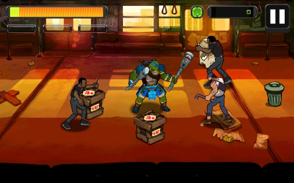 Вот и мы не питали особых иллюзий по этому поводу. Teenage Mutant Ninja Turtles пытается быть эдаким beat«em up, что на деле становится большой проблемой для проекта. Боевая система игры завязана на использовании сенсорного экрана. Штрихом в любую из четырех сторон мы вольны запустить один из приемов, который черепашка исполнит без проблем. По идее, таким образом можно выстраивать цепочки ударов, комбинируя контратаки и нападение. В реальности же прохождение уровней на первых порах превращается в беспорядочное нажатие на дисплей в лучших традициях Fruit Ninja. Подобная тактика отлично работает и не вызывает никаких сложностей до тех пор, пока враги не научатся ставить блоки.
