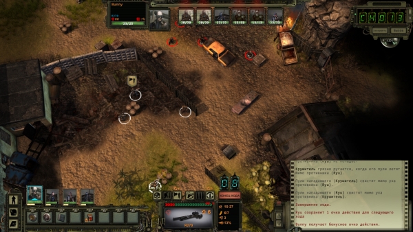 Бои в Wasteland 2 получились весьма увлекательными. Пожалуй, если бы игра состояла только из них, мало кто остался бы недовольным. Бандиты стреляют метко, бьют сильно и крайне редко сидят на одном месте. Мутанты тоже могут доставить немало хлопот — зомби передвигаются с черепашьей скоростью, но обладают богатырским здоровьем, а мухи-переростки, напротив, рассыпаются от пары выстрелов, зато могут отравить и очень больно покусать. Расставив по уровням бочки с горючим, авторы предоставили нам интересный выбор. Не получается справиться с большим отрядом противников? Один выстрел по взрывоопасной смеси мигом избавляет от проблемы. Вот только опыта за такой нечестный ход не получит никто. В плане механики Wasteland 2 очень напоминает XCOM: Enemy Within: персонажи автоматически прячутся за укрытиями разной степени надежности, могут оставаться в засаде, чтобы перехватить ход соперника, а также менять режим стрельбы и приседать. Разве что ложиться бойцы не умеют.