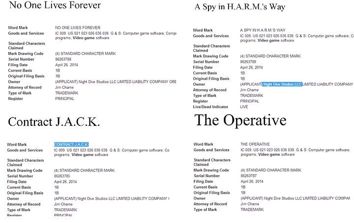 Сотрудники Siliconera заметили, что 26 апреля студия Night Drive зарегистрировала новые торговые марки No One Lives Forever, The Operative, A Spy in H.A. R.M.'s Way и Contract J.A. C.K. Очевидно, что на полноценную новую часть рассчитывать не стоит — эта компания занимается переизданием старых компьютерных игр для современных ОС. К тому же, собственником лицензии она также не является, поэтому справедливо будет предположить скорое появление обновленных версий всех трёх частей серии.