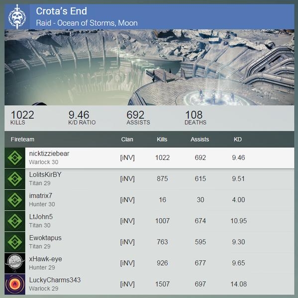Интересно, что эту честь завоевали те же самые люди, которые первыми завершили рейд Vault of Glass на высоком уровне сложности — клан Invigorate Gaming. Статистику их убийств и смертей можно увидеть на скриншоте ниже. Bungie обещает, что в ближайшее время свяжется с членами команды, чтобы те дали компании интервью и рассказали о впечатлениях.