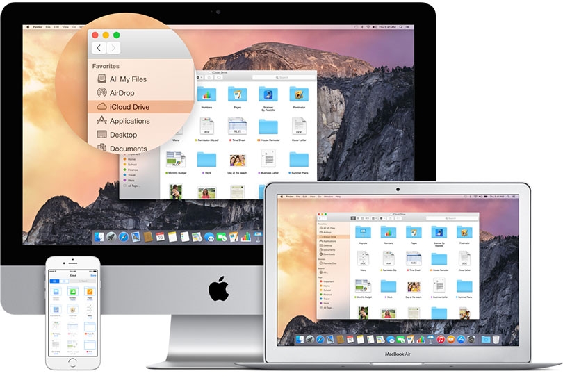 Технология AirDrop теперь позволяет передавать файлы между Mac и iOS. Также и iCloud Drive даёт возможность хранить в облаке файлы любых типов и упорядочивать их с помощью папок, доступ к ним возможен с Mac, iPhone, iPad или Windows-компьютера. Семейный доступ позволяет обмениваться покупками друг друга через iTunes, iBooks и App Store для Mac.