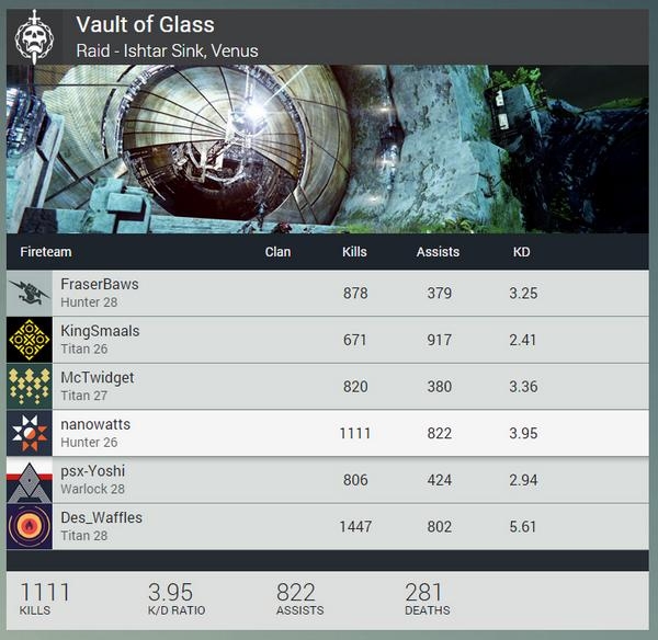 Разумеется, очень многие попытались завершить этот рейд первыми, транслируя свои забеги в Twitch. И коллективу PrimeGuard это удалось — спустя десять часов и сорок минут они победили финального босса. Bungie подтвердила это, опубликовав их статистику убийств и смертей в своём твиттере. Сейчас ребята продолжают прохождение, но на сей раз — на более высоком уровне сложности.