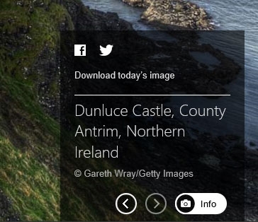 Помимо этого давно запрашиваемого, по словам Microsoft, новшества были внедрены и другие. Например, Microsoft решила добивать функцию, с помощью которой пользователи могут ознакомиться с подробностями о фотографии, поделиться ею в Сети и загрузить на свою систему для использования в виде обоев рабочего слота. Для этого нужно навести мышью на нижнюю правую кнопку, после чего появится соответствующий функциональный блок.