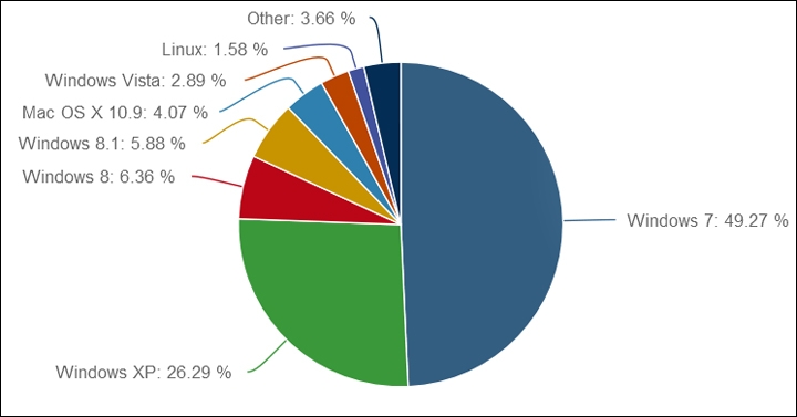 Netmarketshare приводит несколько другую статистику. По её оценкам, в конце апреля доля Windows XP составляла 26,29% на рынке персональных компьютеров. В марте данная платформа занимала 27,69% глобального рынка, а в апреле 2013-го — 38,31%.