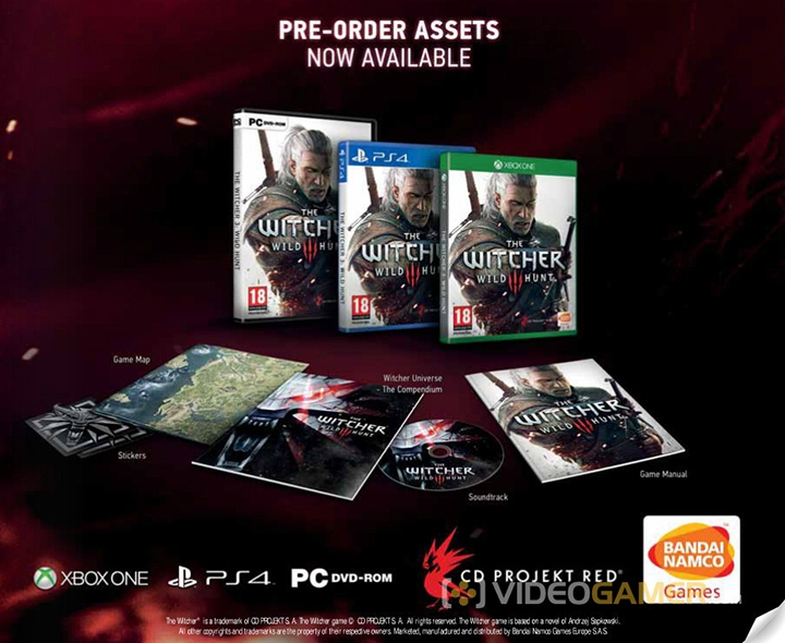 Впрочем, журналистам уже удалось подпортить предстоящие сюрпризы. Портал MCV опубликовал фотографию с коробками The Witcher 3: Wild Hunt для всех трёх платформ и содержимым стандартного издания. Всем покупателям обычной версии достанутся диск с саундтреком, карта игрового мира, тематические наклейки, артбук Witcher Universe Compendium и руководство по игре.