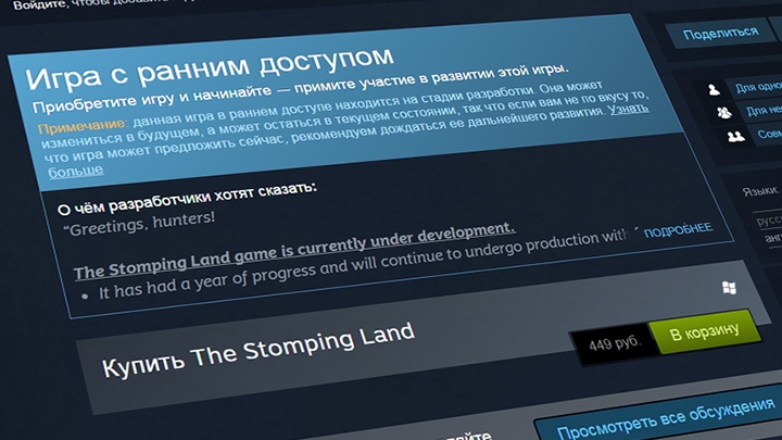 В июне 2013 года многопользовательская игра The Stomping Land, посвящённая выживанию в мезозойскую эру, собрала на Kickstarter $114 тыс. — почти в шесть раз больше требуемого. В мае прошлого она появилась в раннем доступе Steam, но со временем у игроков появились сомнения в том, доберётся ли она когда-нибудь до релиза. А недавно один из разработчиков сообщил, что работа над проектом практически остановилась.