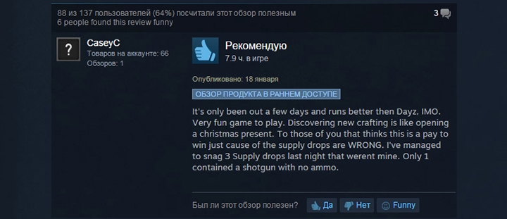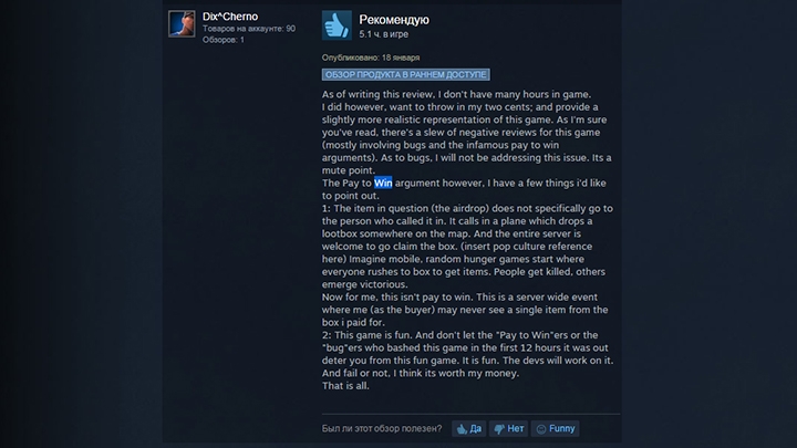 Сейчас же глава компании утверждает, что цитировать его высказывание восьмимесячной давности, пытаясь показать, что разработчики ведут себя нечестно, просто глупо. «Если вы считаете, что это pay-to-win, просто не покупайте игру, — заявил он на Reddit. — Но я советую вам сначала лично познакомиться с airdrop и только затем делать выводы». Смедли подчеркнул, что в будущем данная особенность претерпит немало изменений. В скором времени разработчики увеличат радиус падения ящиков и количество находящихся на сервере человек, необходимое, чтобы вызывать самолёт.