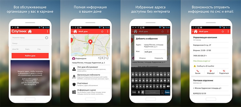 Служба «Мой дом» для Android и iOS предоставляет доступ к информации о различных организациях, обслуживающих российские домохозяйства и расположенных поблизости от заданного адреса: управляющих компаниях, поликлиниках, участковых, государственных учреждениях, почтовых отделениях, военкоматах, ближайших станциях метро и так далее.