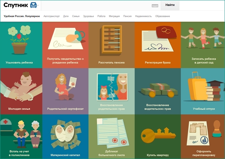 22 мая Ростелеком осуществил запуск поисковой системы «Спутник», нацеленной на отечественный рынок и российскую информационную среду. Поисковик призван облегчить поиск важной информации в Интернете, новостях, на телевидении (программа и онлайн-трансляции), на карте — например, поиск лекарства в ближайших аптеках. Также служба предоставляет актуальную информацию о государственных услугах, социальных институтах и правовых отношениях.