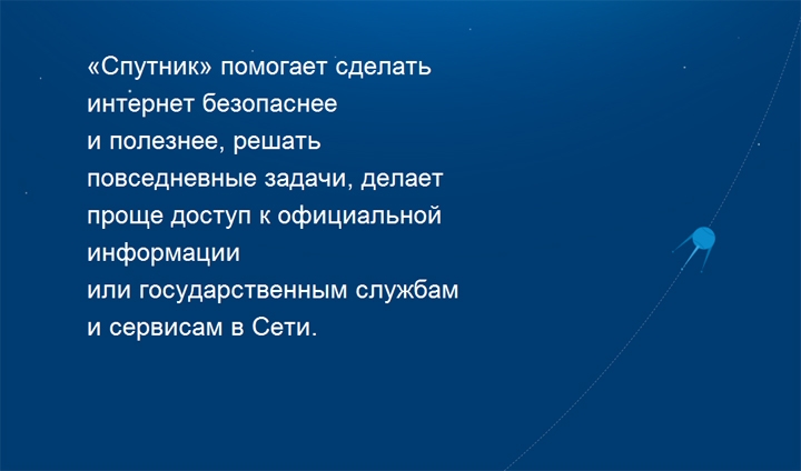 Напомним, что новый сервис объединяет в себе поисковую систему, агрегатор новостей, картографическую службу, а также различные информационные сервисы, помогающие получить информацию об оформлении различных документов, приобретении движимого и недвижимого имущества, усыновлении детей, решении семейных вопросов и пр. «Спутник» позволяет просматривать телепрограмму и видеоматериалы в онлайне. На портале можно также найти информацию финансового характера и сводки погоды.