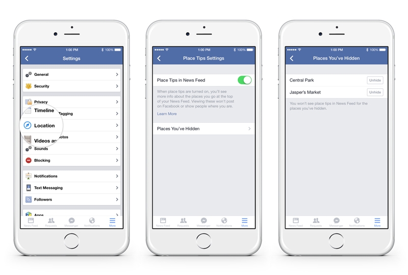 Facebook подчёркивает, что при нажатии на уведомление не производится автоматическое создание каких-либо постов, а другие участники социальной сети не могут узнать, где в настоящий момент находится пользователь. Кроме того, Place Tips можно в любой момент деактивировать в настройках.