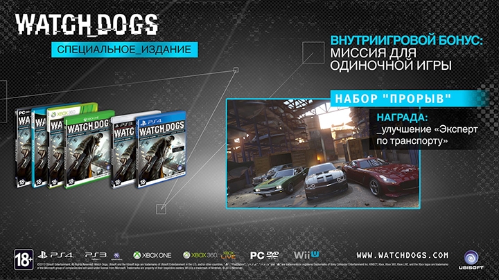 Сегодня, 27 мая, на территории России в продажу поступил хакерский экшен Watch Dogs, разработкой которого на протяжении пяти лет занимались монреальское и парижское подразделения Ubisoft, а также Ubisoft Reflections. В нашей стране игру полностью на русском языке выпустила компания »1С-СофтКлаб» как в стандартном, так и специальном изданиях для PC, PlayStation 3, PlayStation 4 и Xbox 360. Версию для Xbox One можно будет приобрести после официального российского старта продаж консоли, а вариант для Wii U задержится на неопределенный срок.