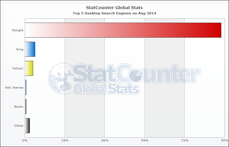 В мировом масштабе, по данным StatCounter, безоговорочным лидером является Google с долей в 88,4%. Далее идут Bing и Yahoo! с результатом в 4,5 и 3,7% соответственно.