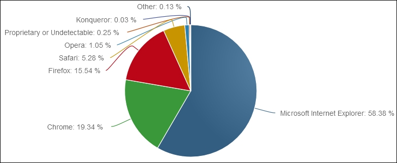 Суммарная доля браузеров Microsoft Internet Explorer достигает почти 60 %