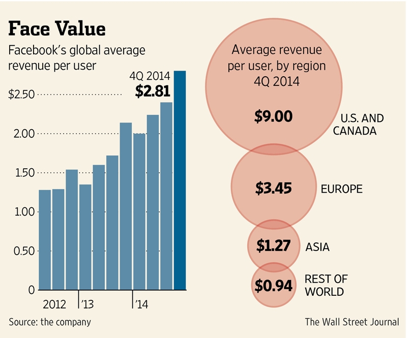 Годовая выручка соцсети выросла на 58%: если в 2013-м компания получила $7,87 млрд, то в 2014-м — $12,47 млрд. Чистая годовая прибыль при этом поднялась с $1,50 до $2,94 млрд, а прибыль в пересчёте на одну акцию увеличилась с $0,60 до $1,10.