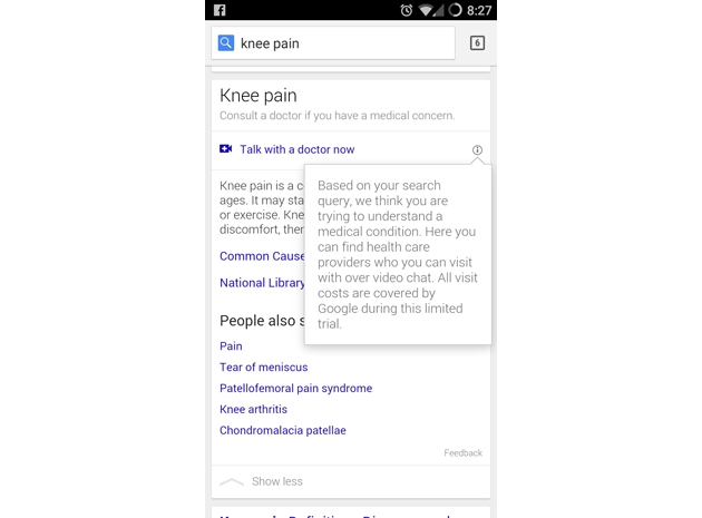 Похоже, что у Google есть решение для подобных ситуаций. Компания подтвердила ресурсу Engadget, что в настоящее время тестирует новую функцию в стиле Helpouts, которая позволит проводить видеочаты с врачами для выяснения причин появления симптомов заболевания.