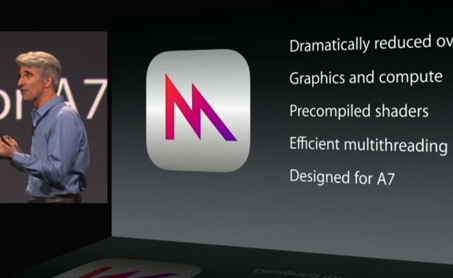 Во время анонса iOS 8 в июне на конференции WWDC 2014 компания Apple представила Metal — новый графический API, оптимизированный под чипы A. Эта технология позволяет разработчикам добиваться большей отдачи от графики и процессора мобильных устройств за счёт эффективного использования многоядерных CPU, снижения нагрузки на CPU, скомпилированных и оптимизированных заранее шейдеров, вычислительных шейдеров, низкоуровневого доступа к оборудованию для большего контроля над ресурсами.