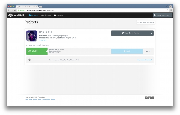 Unity Cloud Build позволяет не тратить время на сборку — этот сервис автоматически анализирует информацию в системе управления версиями проекта (будь то GIT, SVN или Perforce) и, как только обнаруживает в ней изменения, пересобирает проект для выбранных систем. По окончании процесса сборки сервис рассылает уведомления по электронной почте.
