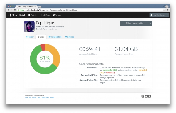 Студия Camouflaj приняла участие в тестировании Unity Cloud Build и, по словам ее представителей, добилась выдающихся результатов: вместо 3–4 сборок в день у студии получилось создавать около 20, что значительно ускорило процесс разработки и отладки.