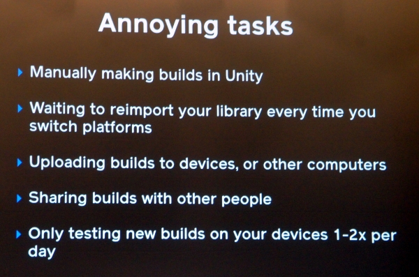 Поскольку Unity — это кросс-платформенный движок, который позволяет создавать проекты для практически любых мобильных устройств, настольных компьютеров и современных консолей (за исключением разве что Nintendo 3DS), сборка игры для каждой из платформ занимает огромное количество времени и зачастую требует содержания в рамках команды отдельного бильд-инженера.
