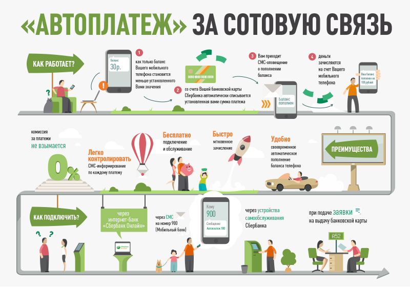 Примеров подобных ситуаций можно привести ещё много, каждый из нас сталкивался с ними в прошлом и не застрахован от них в будущем. Для людей, которые ценят своё время и не хотят зависеть от обстоятельств, Сбербанк предлагает простое решение проблемы — услугу «Автоплатёж» за сотовую связь.