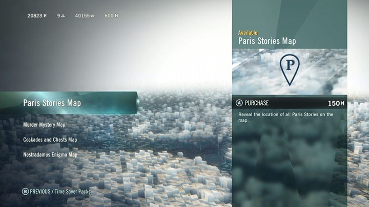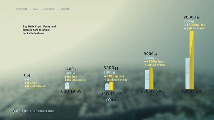 В «Единстве» можно даже купить карты с отмеченными на них местами расположения предметов — к примеру, положение всех разбросанных по Парижу бонусов можно узнать за 150 Helix Credits (примерно $2). Игроков же неприятно удивило то, что приобрести эту валюту можно только в виде трёх пакетов: за $20 (1,4 тыс. Helix Credits), за $50 (9 тыс. Helix Credits) и за $100 (20 тыс. Helix Credits).