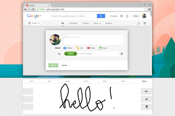 Франсуа Бофорт (François Beaufort), один из разработчиков компании Google, опубликовал запись в ленте своего аккаунта социальной сети Google+ о начале тестирования новой возможности в составе операционной системы Chrome OS — распознавания рукописного ввода.